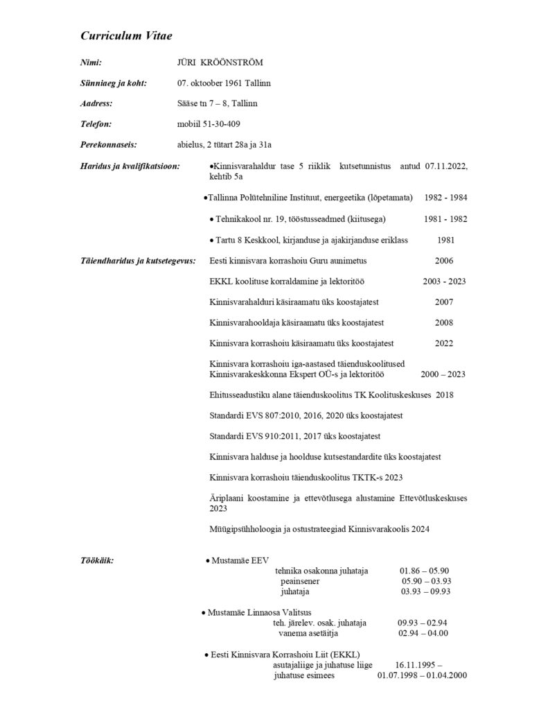 Jüri Proprietas OÜ on asutatud 03.07.2024 Jüri Kröönströmi poolt ainuomanikuna ja firma tegutseb kinnisvara korrashoiu valdkonnas. Omanikul on 31 a töökogemust kinnisvara korrashoiu valdkonnas, projektide juhtimisel ja koolituste korraldamisel.